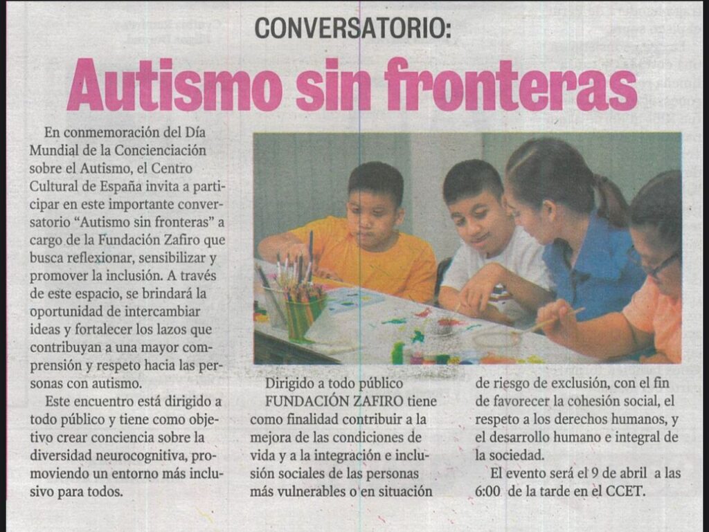Desde Fundación Zafiro promovemos iniciativas como “Autismo sin Fronteras”, que ayudan a abrir espacios de aprendizaje y reflexión en la sociedad. La concienciación es un paso fundamental para avanzar hacia comunidades más inclusivas, donde los niños, jóvenes y adultos dentro del espectro autista puedan desarrollar plenamente su potencial.